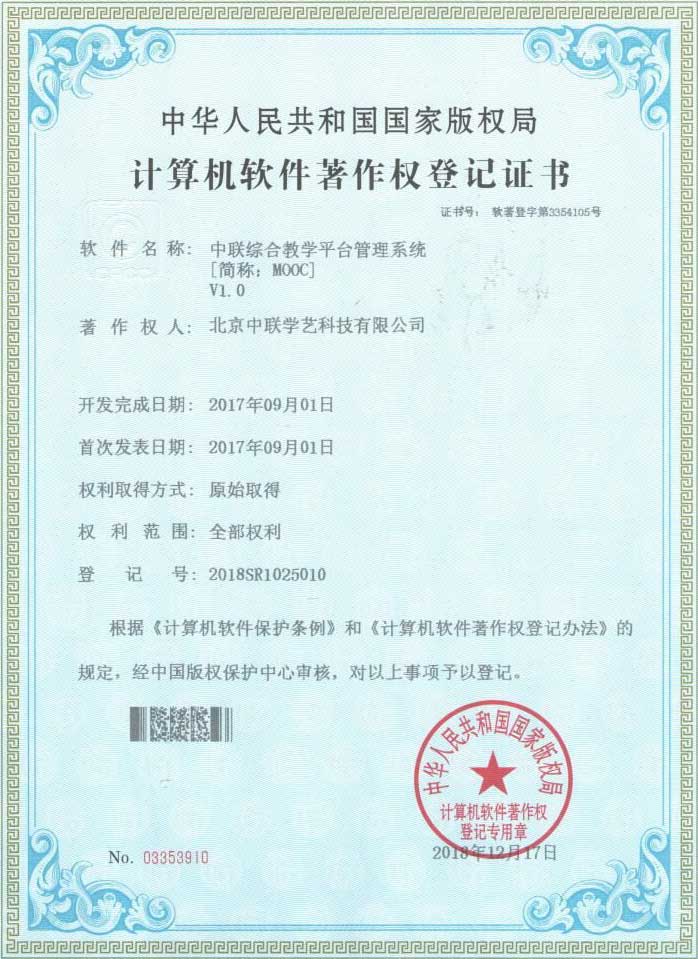 中聯教育平臺軟著權證書