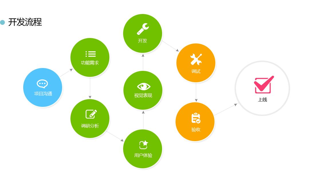 任何app項(xiàng)目的設(shè)計(jì)開發(fā)團(tuán)隊(duì)都需要以下這些人員:1.負(fù)責(zé)和用戶溝通的產(chǎn)品經(jīng)理 2.設(shè)計(jì)頁面的ui設(shè)計(jì)師3.根據(jù)設(shè)計(jì)提供圖片切成網(wǎng)頁的前端開發(fā) 4.頁面做好后后端開發(fā)功能更 5.項(xiàng)目完成后的測試。。。。 怎樣去合理的安排每個(gè)成員的工作,確保項(xiàng)目如期的順利完成呢?這時(shí)候一個(gè)合理齊清晰的開發(fā)流程就非常重要了。